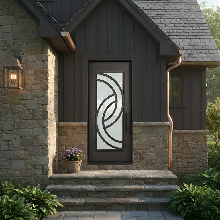 | LITITZ RH Wrought Iron Door 42 X 96 RIGHT HAND INSWING FLAT BLACK Color SANDBLAST Glass STEEL Material PULL HANDLE #006 SQUARE DEADBOLT SINGLE SQUARE TOP Modern, Contemporary, Art Deco Style solid, Residential, Commercial (Pull Handles and Locks are price separately) | |