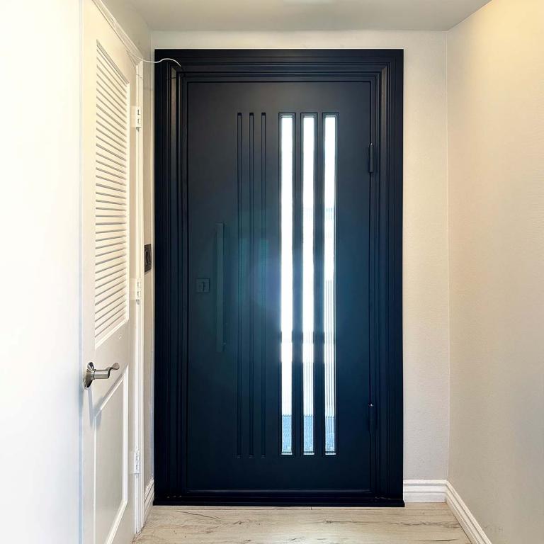 | DOLCE RH WROUGHT IRON Style 37 X 81 RIGHT HAND INSWING FLAT BLACK Color REEDED Glass STEEL Material PULL HANDLE #006 SQUARE DEADBOLT SINGLE SQUARE TOP Modern, Contemporary, Art Deco Style solid, Residential, Commercial (Pull Handles and Locks are price separately) | |