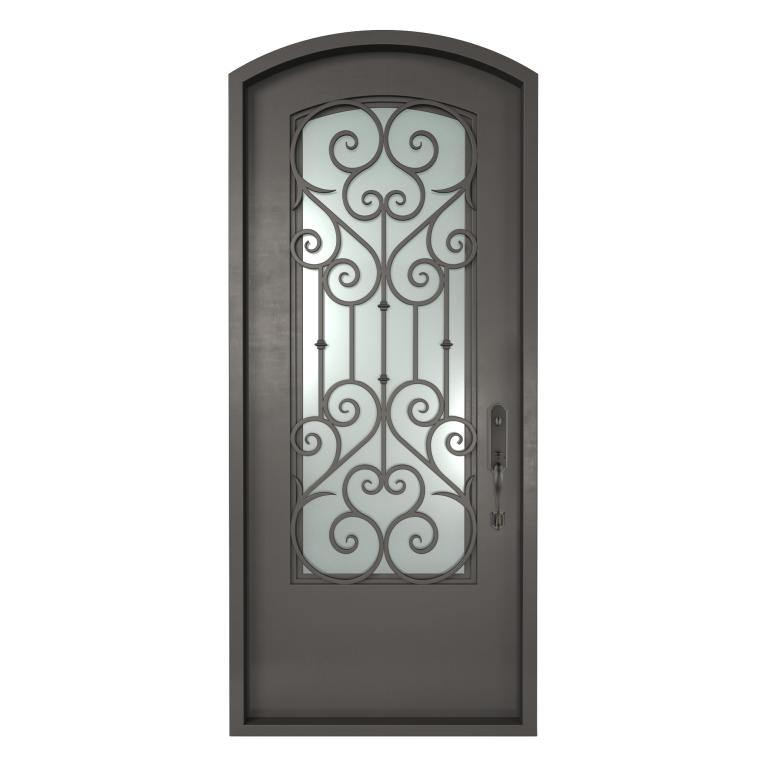 | VATICAN LH #R ***AS IS*** WROUGHT IRON Style 42 X 96 LEFT HAND INSWING MEDIUM COPPER Color SANDBLAST Glass ROCCO - 9601-ORB- ET - ACTIVE SINGLE EYEBROW TOP Mediterranean, Spanish, Italianate Style special, clearance, solid, Residential, Commercial (Pull Handles and Locks are price separately) NO SCREEN, NO PULL HANDLES | |