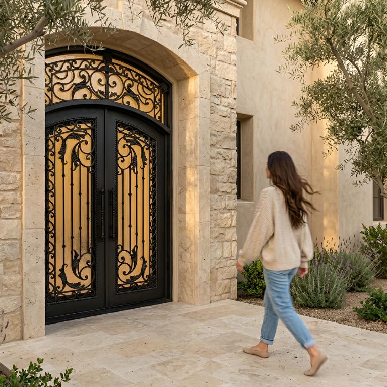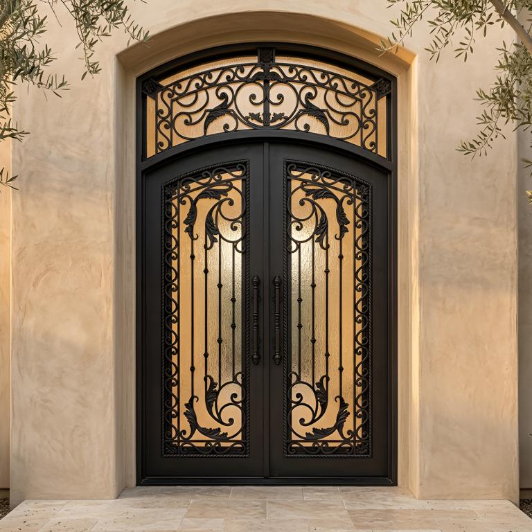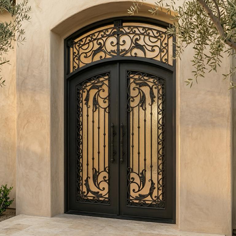 | ATHENA LH WROUGHT IRON Style 72 X 120 LEFT HAND INSWING MEDIUM COPPER Color RAIN Glass STEEL Material PULL HANDLE #046 VITO - D107 - BL - S - DOUBLE EYEBROW TOP Mediterranean, Spanish, Italianate, Religious Style wTransom, wScreen, Residential (Pull Handles and Locks are price separately) | |