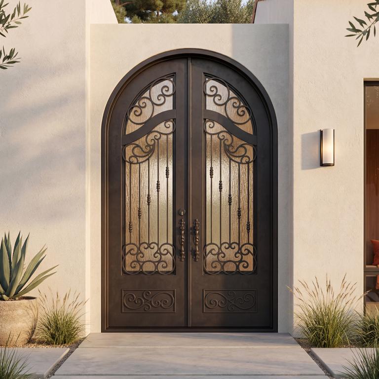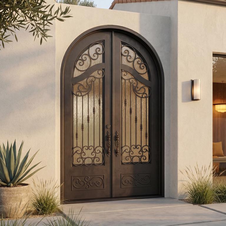 | REMINGTON LH WROUGHT IRON Style 72 X 120 LEFT HAND INSWING MEDIUM COPPER Color RAIN Glass STEEL Material PULL HANDLE #019 VITO - D107 - BL - S - DOUBLE Mediterranean, Spanish, Italianate, Religious Style wScreen, Residential, Commercial (Pull Handles and Locks are price separately) | |
