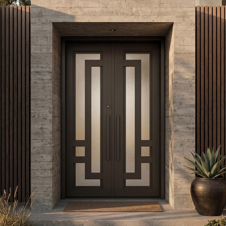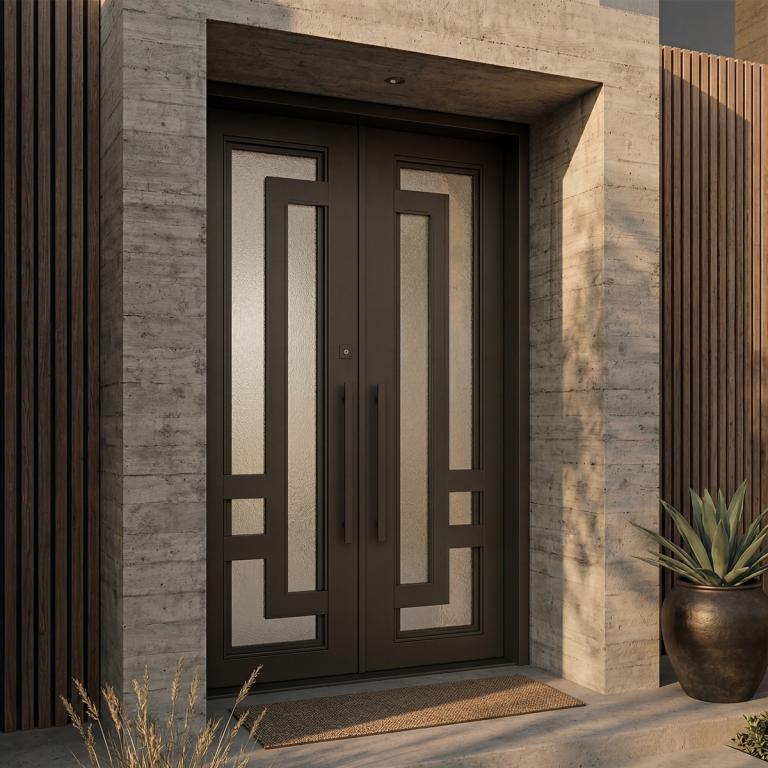 | OSLO 2 LH WROUGHT IRON Style 61 X 96 LEFT HAND INSWING FLAT BLACK Color SANDBLAST Glass STEEL Material PULL HANDLE #006 VITO - D107 - BL - S - DOUBLE SQUARE TOP Modern, Contemporary, Art Deco Style wScreen, Residential, Commercial (Pull Handles and Locks are price separately) | |