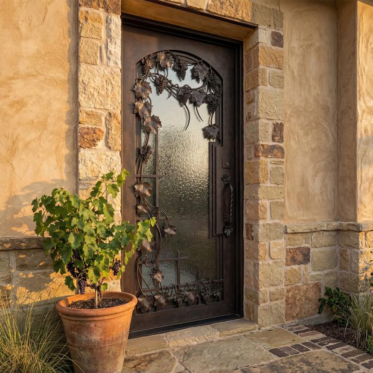 | VINO LH WROUGHT IRON Style 42 X 96 LEFT HAND INSWING MEDIUM COPPER Color RAIN Glass STEEL Material PULL HANDLE #016 VITO - D107 - BL - S - SINGLE SQUARE TOP Mediterranean, Spanish, Italianate Style wScreen, solid, Residential, Commercial (Pull Handles and Locks are price separately) | |