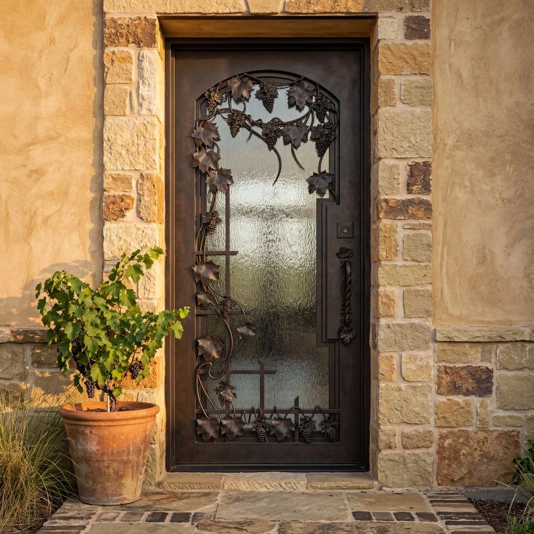 | VINO RH WROUGHT IRON Style 42 X 96 RIGHT HAND INSWING MEDIUM COPPER Color RAIN Glass STEEL Material PULL HANDLE #016 VITO - D107 - BL - S - SINGLE SQUARE TOP Mediterranean, Spanish, Italianate Style wScreen, solid, Residential, Commercial (Pull Handles and Locks are price separately) | |