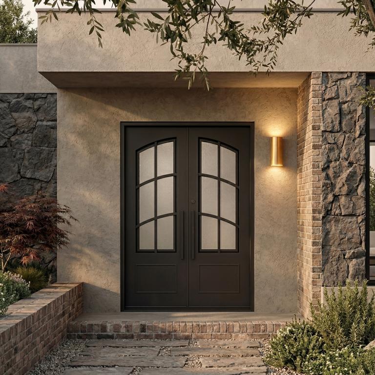 | ESSEX CURVED LH WROUGHT IRON Style 72 X 96 LEFT HAND INSWING FLAT BLACK Color RAIN Glass STEEL Material PULL HANDLE #006 VITO - D107 - BL - S - DOUBLE SQUARE TOP Modern, Contemporary, Farmhouse, Craftsman, Cape Cod Style wScreen, Residential, Commercial (Pull Handles and Locks are price separately) | |