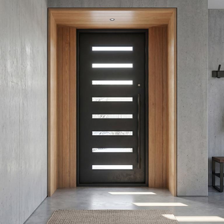 | THE BEAST 2 THERMAL BREAK RH WROUGHT IRON Style 37 X 81 RIGHT HAND INSWING FLAT BLACK Color SANDBLAST Glass STEEL Material PULL HANDLE #038 VITO - D107 - BL - S - SINGLE SQUARE TOP Modern, Contemporary Style Thermal Break, solid, Residential, Commercial (Pull Handles and Locks are price separately) | |