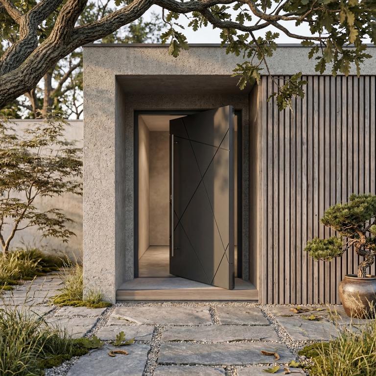 | MATRIX PIVOT LH PIVOT Style 61 X 96 LEFT HAND INSWING FLAT BLACK Color STEEL Material PULL HANDLE #059 BRUSHED ALUMINUM ROUND 70" SQUARE DEADBOLT 8469 - SINGLE CYLINDER (SATIN NICKEL (US15)) SINGLE SQUARE TOP Modern, Contemporary Style solid, Residential, Commercial (Pull Handles and Locks are price separately) | |
