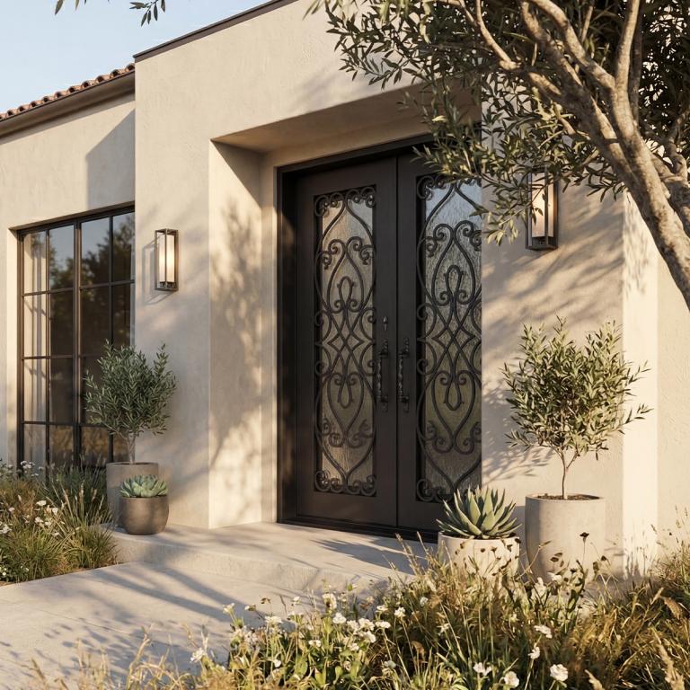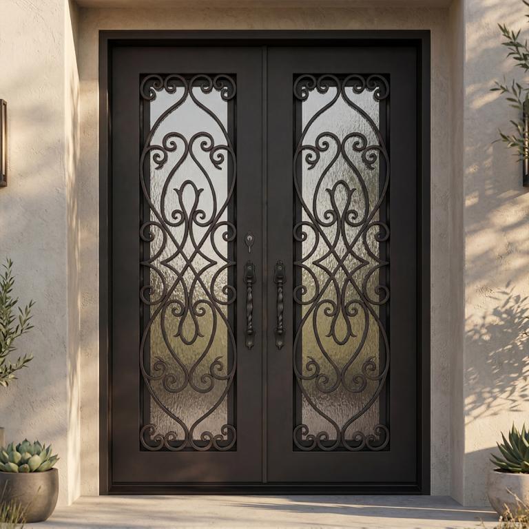 | FLORENCE LH WROUGHT IRON Style 72 X 96 LEFT HAND INSWING DARK COPPER Color RAIN Glass STEEL Material PULL HANDLE #019 SIROCCO - D109 - ORB - SINGLE CYLINDER DOUBLE SQUARE TOP Mediterranean, Spanish, Italianate Style wScreen, Residential, Commercial (Pull Handles and Locks are price separately) | |