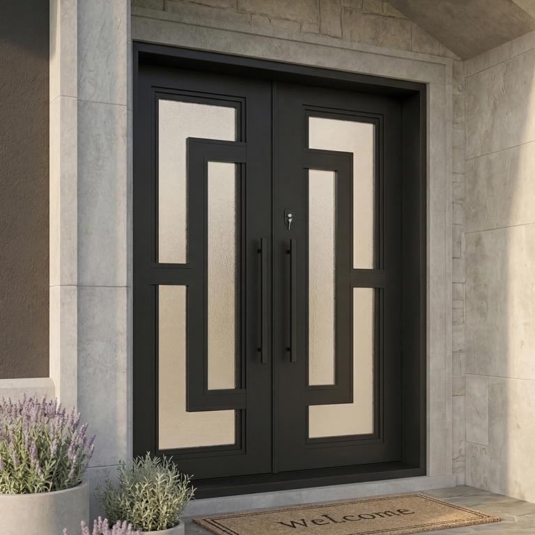 | OSLO THERMAL BREAK LH WROUGHT IRON Style 61 X 81 LEFT HAND INSWING FLAT BLACK Color SANDBLAST Glass STEEL Material PULL HANDLE #006 VITO - D107 - BL - S - DOUBLE SQUARE TOP Modern, Contemporary Style wScreen, Thermal Break, Residential, Commercial (Pull Handles and Locks are price separately) | |
