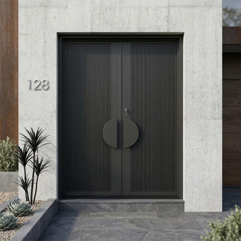 | LUMIERE LH Wrought Iron Door 72 X 96 LEFT HAND INSWING FLAT BLACK Color STEEL Material PULL HANDLE #067 SQUARE DEADBOLT 8469 - SINGLE CYLINDER (FLAT BLACK (US19)) DOUBLE SQUARE TOP Modern, Contemporary Style Residential, Commercial (Pull Handles and Locks are price separately) | |