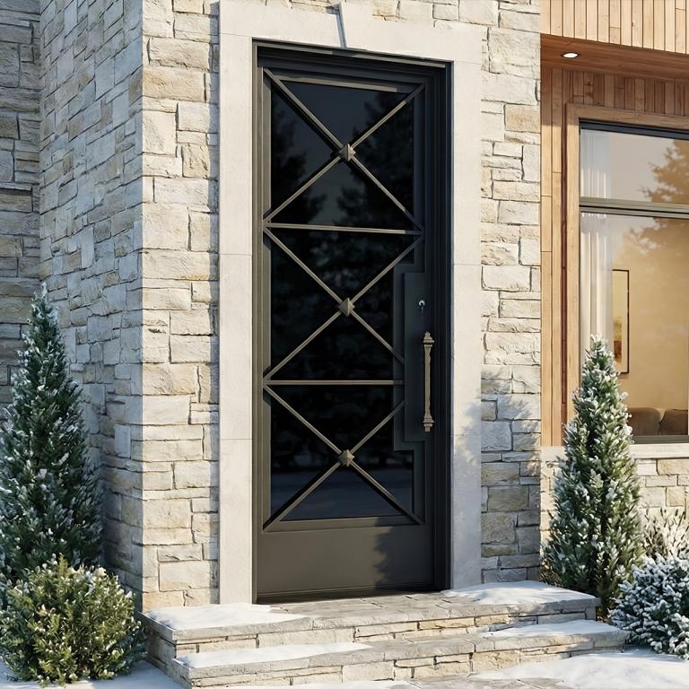 | NANO THERMAL BREAK RH WROUGHT IRON Style 37 X 96 RIGHT HAND INSWING FLAT BLACK Color BLACK OVER BLACK Glass STEEL Material PULL HANDLE #025 SQUARE DEADBOLT 8469 - SINGLE CYLINDER (FLAT BLACK (US19)) SINGLE SQUARE TOP Modern, Contemporary Style Thermal Break (Pull Handles and Locks are price separately) | |