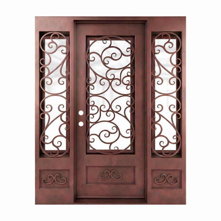 | CUSTOM #815 WROUGHT IRON Style 72 X 96 RIGHT HAND INSWING MEDIUM BRUSHED COPPER (05) Color ROCCO - 9601-ORB- ET - ACTIVE SINGLE SQUARE TOP (Pull Handles and Locks are price separately) | |