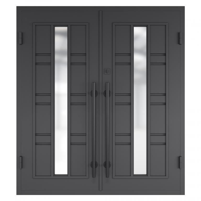 | CONTEMPO RH #R WROUGHT IRON Style 72 X 81 RIGHT HAND INSWING FLAT BLACK Color SANDBLAST Glass STEEL Material PULL HANDLE #038 DOUBLE SQUARE TOP Modern, Contemporary Style (Pull Handles and Locks are price separately) | |