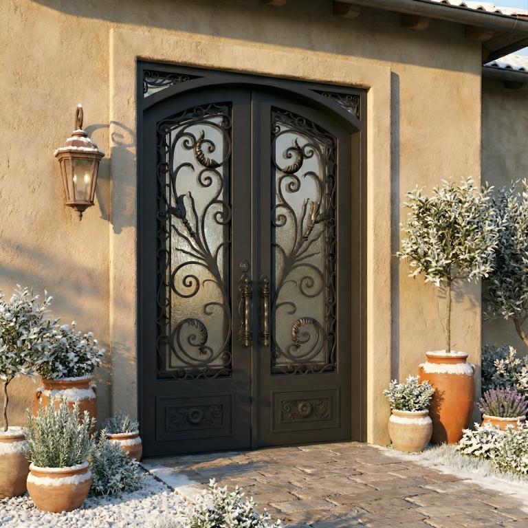 | RENAISSANCE THERMAL BREAK LH WROUGHT IRON Style 61 X 96 LEFT HAND INSWING DARK COPPER Color RAIN Glass STEEL Material PULL HANDLE #019 SIROCCO - D109 - ORB - SINGLE CYLINDER DOUBLE SQUARE TOP Mediterranean, Spanish, Italianate Style wScreen, Thermal Break (Pull Handles and Locks are price separately) | |