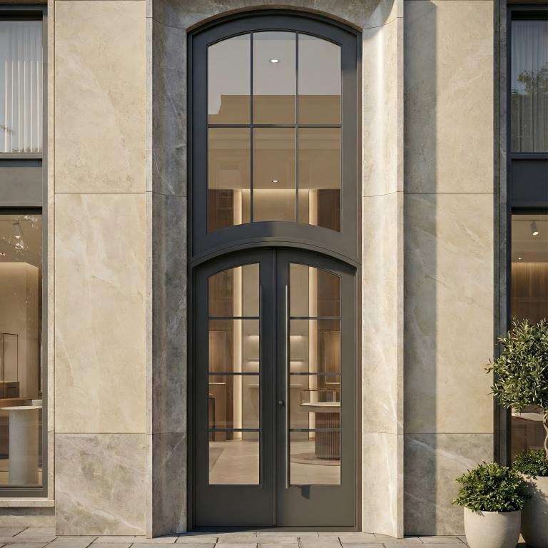 | CUSTOM #1064 PK159 WROUGHT IRON Style 72 X 216 RIGHT HAND INSWING MATTE BLACK (01) Color GREY TINT + LOW-E Glass VITO - D107 - BL - S - EYEBROW TOP (Pull Handles and Locks are price separately) | |