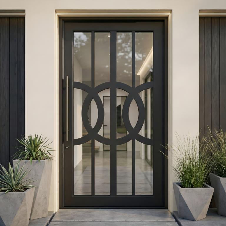 | CUSTOM #1071 PK168 WROUGHT IRON Style 67 X 119 RIGHT HAND INSWING MATTE BLACK (01) Color LOW-E CLEAR Glass PULL HANDLE #006 VITO - D107 - BL - S - SQUARE TOP (Pull Handles and Locks are price separately) | |