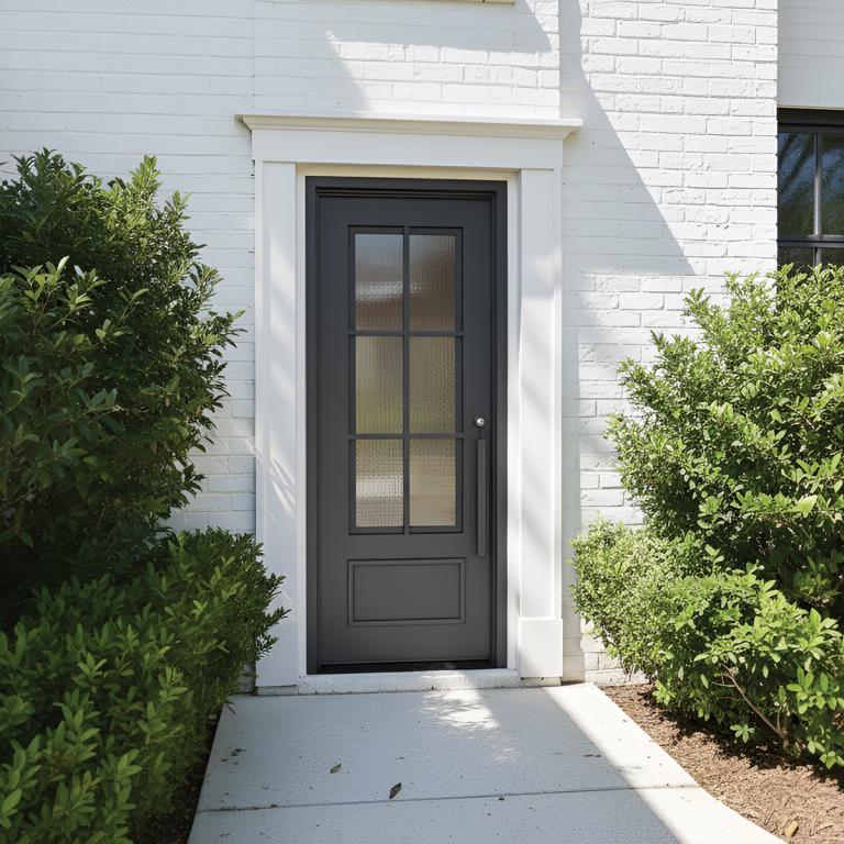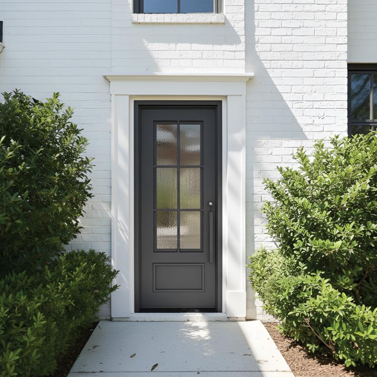 | ESSEX THERMAL BREAK RH WROUGHT IRON Style 37 X 96 RIGHT HAND INSWING FLAT BLACK Color RAIN Glass STEEL Material PULL HANDLE #006 VITO - D107 - BL - S - SINGLE SQUARE TOP Modern, Farmhouse, Craftsman Style wScreen, Thermal Break (Pull Handles and Locks are price separately) | |