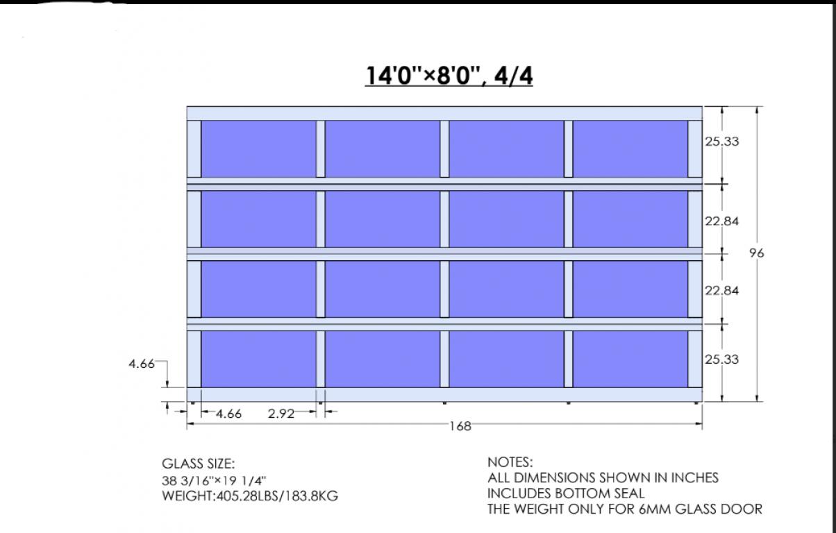 | GARAGE DOOR 14X8 GARAGE DOOR Style 168 X 96 SLIDING FLAT BLACK Color BLACK LAMINATED Glass ALUMINUM Material SIDE MOUNT MOTOR SQUARE TOP special, clearance (Motor price separately) | |