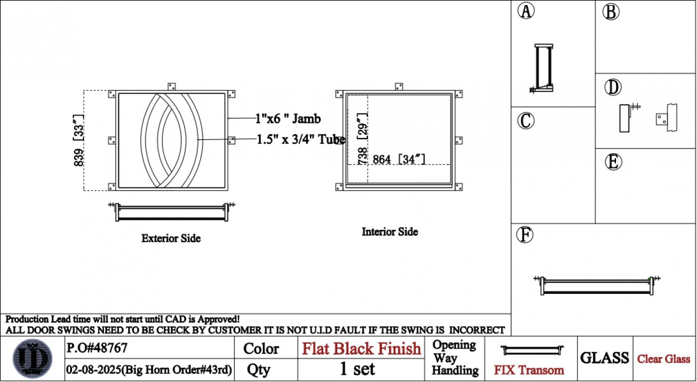 | TRANSOM 1X6 JAMB #R WROUGHT IRON Style 37 X 33 FIXED FLAT BLACK Color CLEAR Glass STEEL Material SINGLE SQUARE TOP wTransom, clearance | |