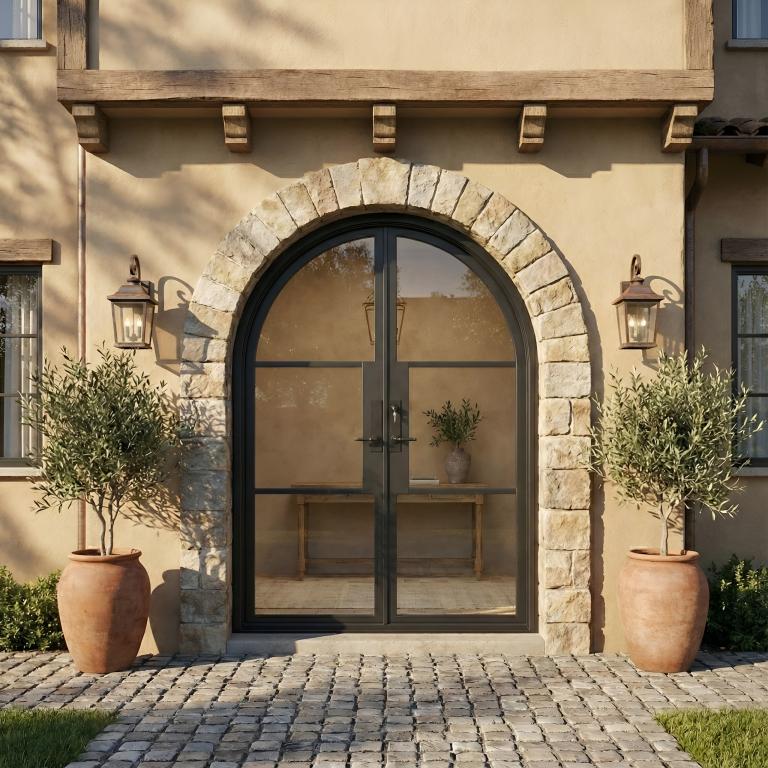 | 6 PANE FRENCH DOOR ROUND TOP RH INSWING #R FRENCH Style 72 X 96 RIGHT HAND INSWING FLAT BLACK Color LOW-E CLEAR Glass STEEL Material TANGO - 305A20 - BL - DM - DUMMY, TANGO - 305A10 - BL - ET - ACTIVE DOUBLE FULL ROUND Modern, Contemporary Style special, clearance (Pull Handles and Locks are price separately) | |
