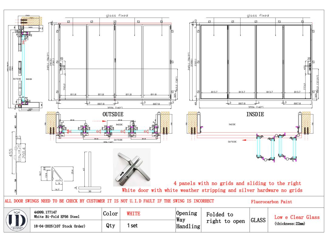 | S40 STEEL BI-FOLD DOOR #R BI-FOLD Style 140 X 97 BI-FOLD WHITE Color LOW-E CLEAR Glass STEEL Material CMECH DOUBLE SQUARE TOP Modern, Contemporary Style special, clearance (Pull Handles and Locks are price separately) | |