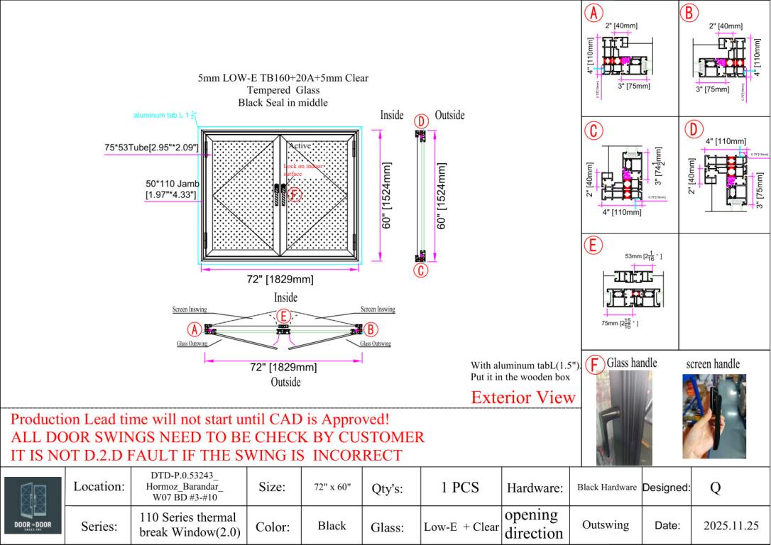 TUSCANY LH WROUGHT IRON Style 61 X 96 LEFT HAND INSWING MEDIUM COPPER Color SANDBLAST Glass STEEL Material PULL HANDLE #019 VITO - D107 - BL - S - DOUBLE SQUARE TOP Mediterranean, Spanish, Italianate Style wScreen, Residential, Commercial (Pull Handles and Locks are price separately)
