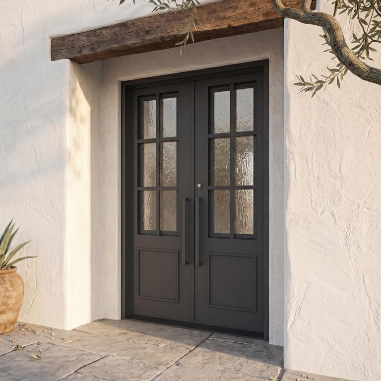 | ESSEX RH #R DARK COPPER WROUGHT IRON Style 61 X 96 RIGHT HAND INSWING DARK COPPER Color RAIN Glass STEEL Material PULL HANDLE #006 VITO - D107 - ORB -S - DOUBLE SQUARE TOP Modern, Contemporary Style (Pull Handles and Locks are price separately) | |