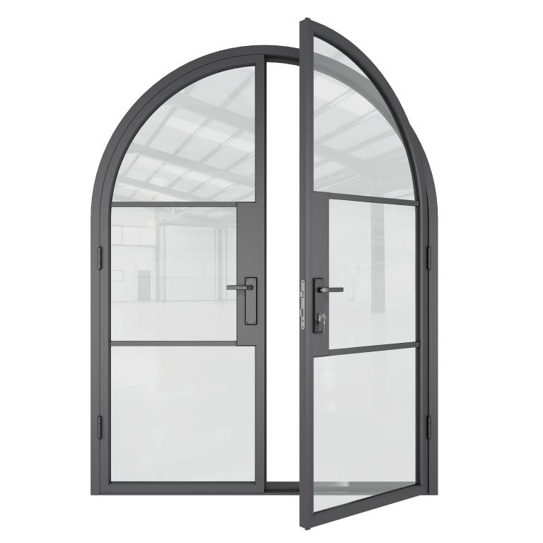 | 6 PANE FRENCH DOOR ROUND TOP RH OUTSWING FRENCH Style 72 X 96 RIGHT HAND OUTSWING FLAT BLACK Color LOW-E CLEAR Glass STEEL Material TANGO - 305A20 - BL - DM - DUMMY, TANGO - 305A10 - BL - ET - ACTIVE DOUBLE FULL ROUND Modern, Contemporary Style (Pull Handles and Locks are price separately) | |