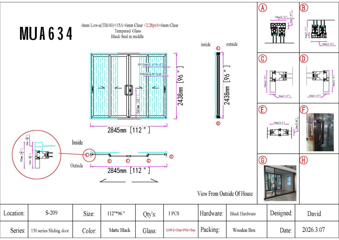 | ALUMINUM SLIDING DOOR WITH IMPACT GLASS (PVB) SM ALUMINIUM SLIDING Style 112 X 96 SLIDING FLAT BLACK Color LOW-E CLEAR - PVB CLEAR (IMPACT) Glass ALUMINUM Material SQUARE TOP Modern, Contemporary Style wScreen, Thermal Break, special, clearance, ImpactProof | |