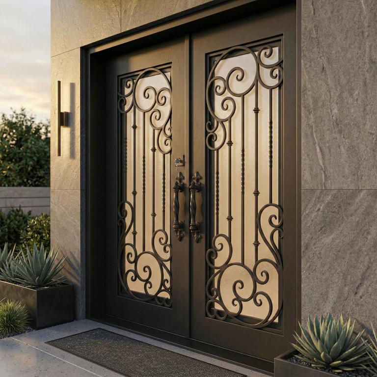 | ELITE 2773 LH WROUGHT IRON Style 72 X 81 LEFT HAND INSWING MEDIUM COPPER Color RAIN Glass STEEL Material PULL HANDLE #019 VITO - D107 - BL - S - DOUBLE SQUARE TOP Mediterranean, Spanish, Italianate Style wScreen, Residential, Commercial (Pull Handles and Locks are price separately) | |