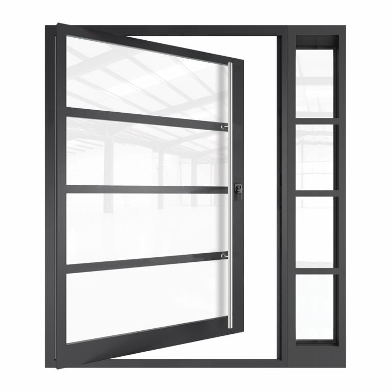 Kush Pivot with SIdelight LH #R PIVOT Style 73 X 82 LEFT HAND INSWING DARK COPPER Color CLEAR Glass STEEL Material PULL HANDLE #053 STAINLESS STEEL SILVER ROUND 59" VITO - D107 - SN - S - SINGLE SQUARE TOP Modern, Contemporary Style clearance (Pull Handles and Locks are price separately)