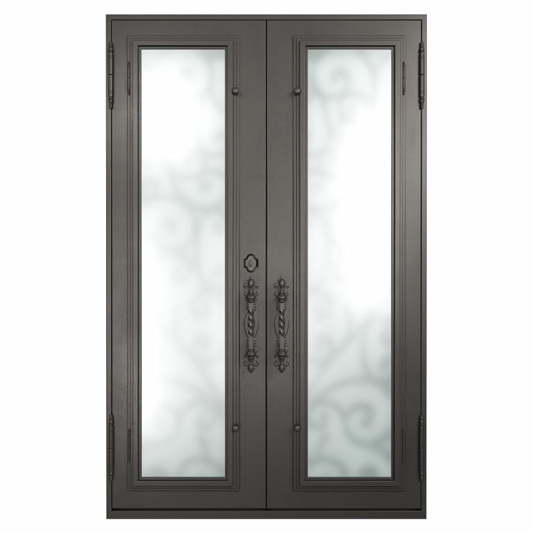 | TUSCANY LH Wrought Iron Door 61 X 96 LEFT HAND INSWING MEDIUM COPPER Color SANDBLAST Glass STEEL Material PULL HANDLE #019 SQUARE DEADBOLT DOUBLE SQUARE TOP Mediterranean, Spanish, Italianate Style Residential, Commercial (Pull Handles and Locks are price separately) | |