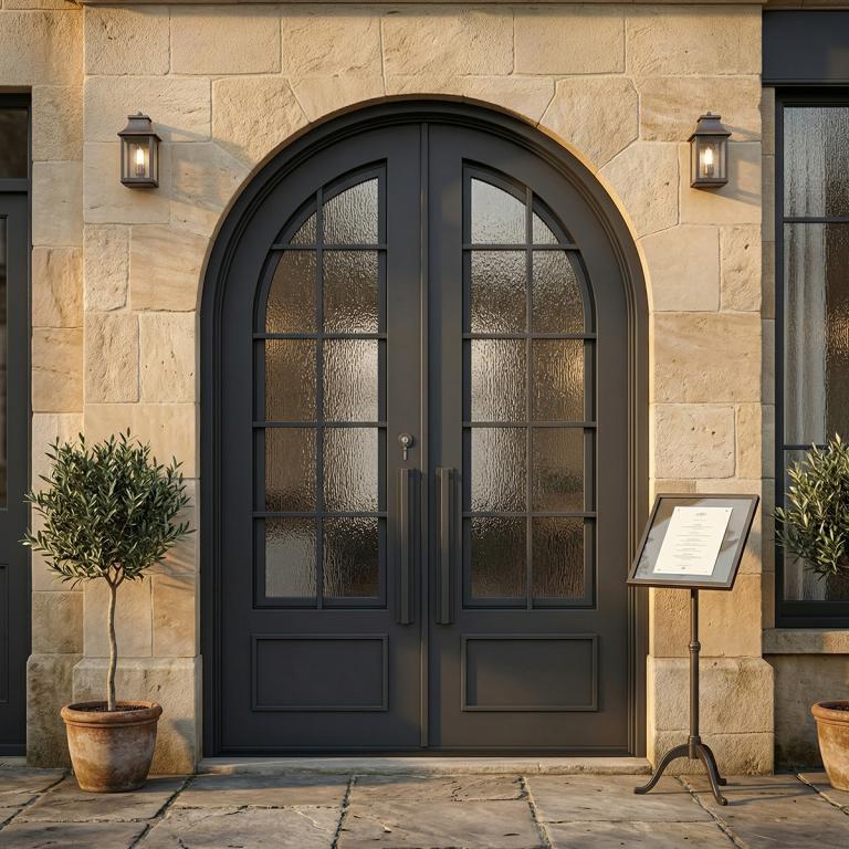 | ESSEX LH (ROUND TOP) WROUGHT IRON Style 72 X 108 LEFT HAND INSWING FLAT BLACK Color RAIN Glass STEEL Material PULL HANDLE #006 VITO - D107 - BL - S - DOUBLE FULL ROUND Modern, Contemporary, Art Deco, Farmhouse, Craftsman, Cape Cod Style wScreen, Residential, Commercial (Pull Handles and Locks are price separately) | |