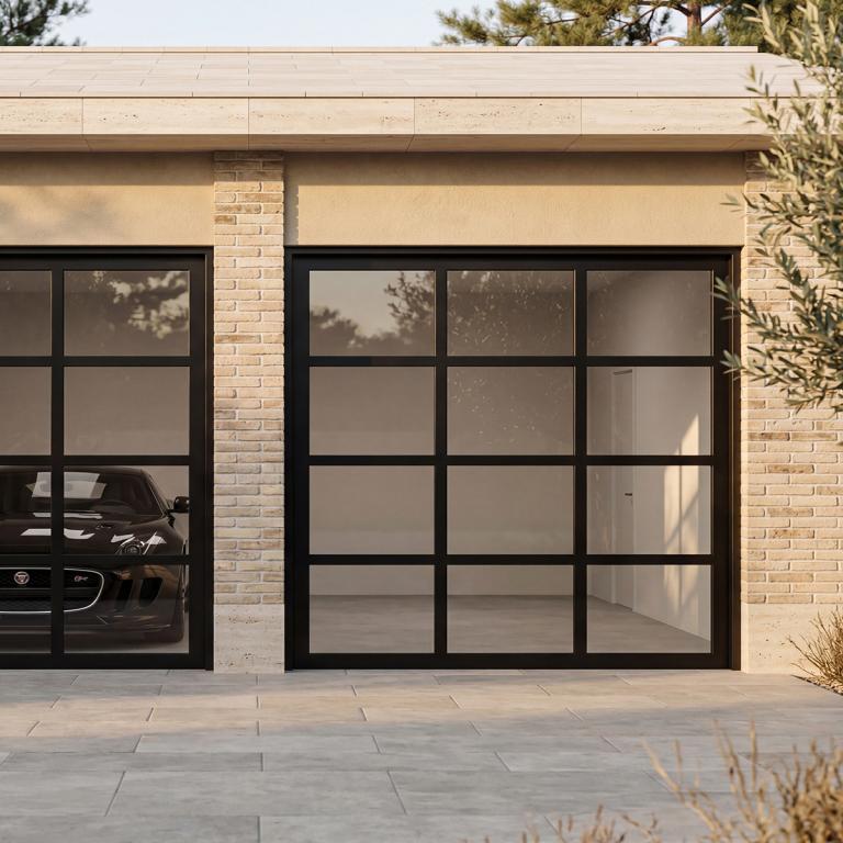 | GARAGE DOOR 9X7 1/4 GARAGE DOOR Style 108 X 87 SLIDING FLAT BLACK Color CLEAR Glass SQUARE TOP Modern, Contemporary Style clearance, solid, Residential, Commercial | |