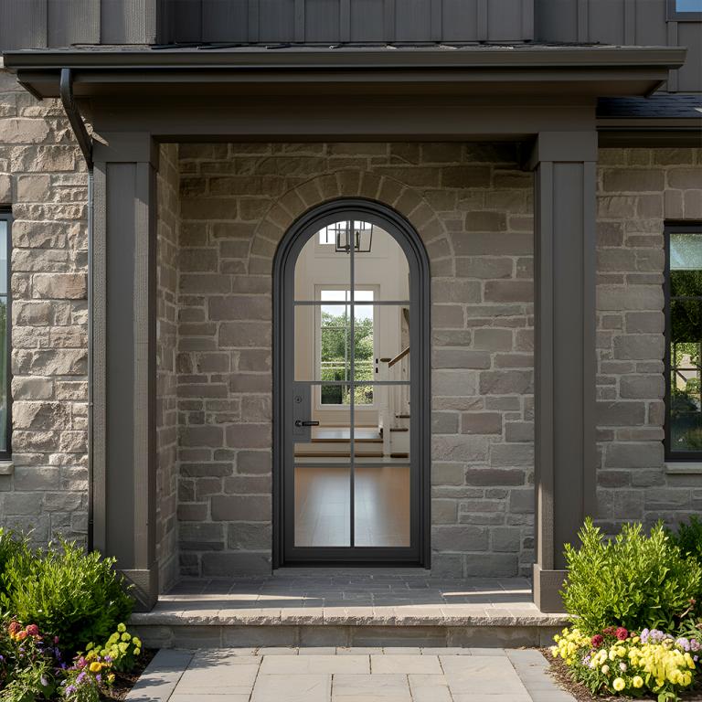PEACE ROUND TOP RH FRENCH Style 37 X 96 RIGHT HAND INSWING FLAT BLACK Color CLEAR Glass STEEL Material TANGO - 305A10 - BL - ET - ACTIVE SINGLE FULL ROUND Modern, Contemporary Style solid, Residential, Commercial (Pull Handles and Locks are price separately) |