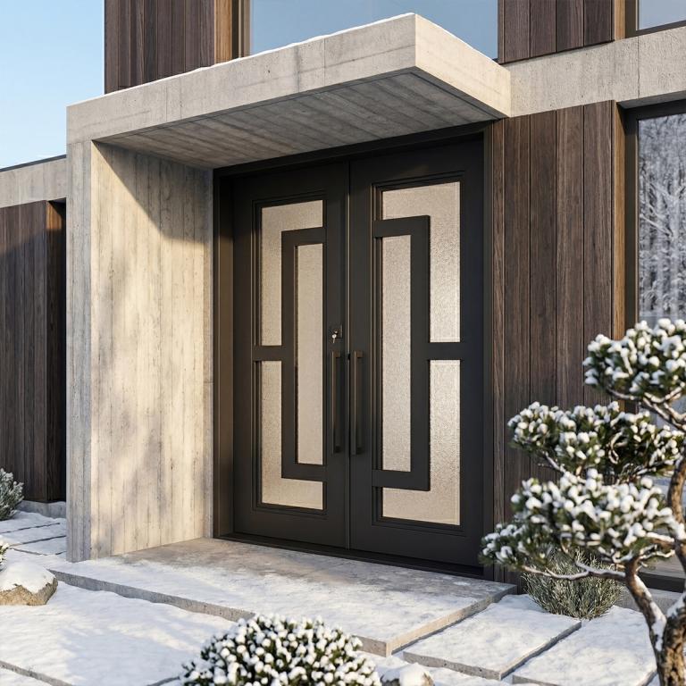| OSLO THERMAL BREAK RH WROUGHT IRON Style 72 X 81 RIGHT HAND INSWING FLAT BLACK Color SANDBLAST Glass STEEL Material PULL HANDLE #006 VITO - D107 - BL - S - DOUBLE SQUARE TOP Modern, Contemporary Style wScreen, Thermal Break, Residential, Commercial (Pull Handles and Locks are price separately) | |