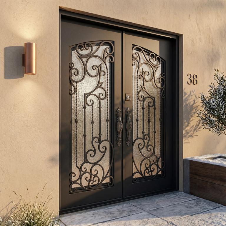 | TAMPA THERMAL BREAK LH WROUGHT IRON Style 72 X 81 LEFT HAND INSWING MEDIUM COPPER Color RAIN Glass STEEL Material PULL HANDLE #019 VITO - D107 - BL - S - DOUBLE SQUARE TOP Mediterranean, Spanish, Italianate Style wScreen, Thermal Break, Residential, Commercial (Pull Handles and Locks are price separately) | |
