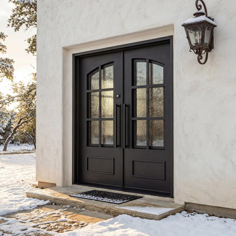 | ESSEX THERMAL BREAK EYEBROW RH WROUGHT IRON Style 72 X 81 RIGHT HAND INSWING FLAT BLACK Color RAIN Glass STEEL Material PULL HANDLE #006 VITO - D107 - BL - S - DOUBLE SQUARE TOP Modern, Contemporary, Farmhouse, Craftsman, Cape Cod Style wScreen, Thermal Break, Residential, Commercial (Pull Handles and Locks are price separately) | |