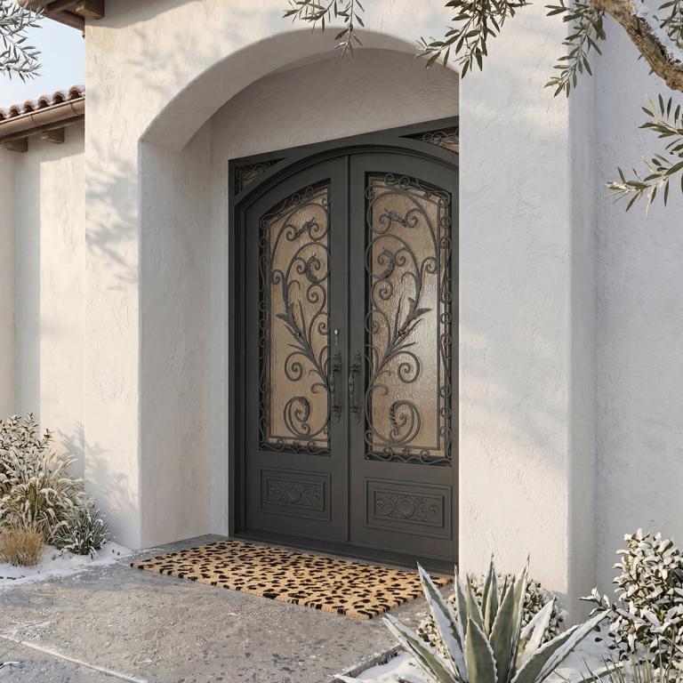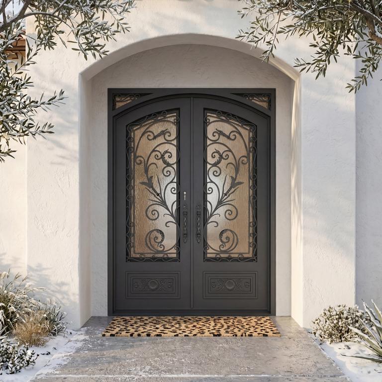 | RENAISSANCE THERMAL BREAK LH WROUGHT IRON Style 72 X 96 LEFT HAND INSWING DARK COPPER Color RAIN Glass STEEL Material PULL HANDLE #019 VITO - D107 - BL - S - DOUBLE SQUARE TOP Mediterranean, Spanish, Italianate, Religious Style wScreen, Thermal Break, Residential, Commercial (Pull Handles and Locks are price separately) | |