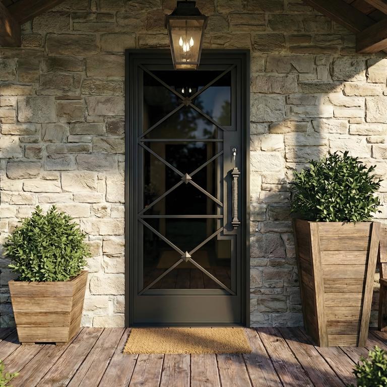 | NANO LH WROUGHT IRON Style 37 X 81 LEFT HAND INSWING FLAT BLACK Color BLACK OVER BLACK Glass STEEL Material PULL HANDLE #025 VITO - D107 - BL - S - SINGLE SQUARE TOP Modern, Contemporary Style wScreen (Pull Handles and Locks are price separately) | |