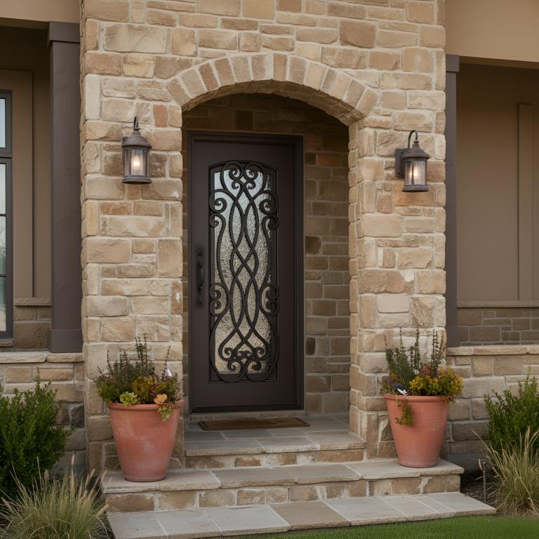 | CARMEN LH WROUGHT IRON Style 37 X 81 LEFT HAND INSWING DARK COPPER Color WATERCUBIC Glass STEEL Material PULL HANDLE #012 SQUARE DEADBOLT 8469 - SINGLE CYLINDER (OIL RUBBED BRONZE (US10B)) SINGLE SQUARE TOP Mediterranean, Spanish, Italianate Style wScreen (Pull Handles and Locks are price separately) | |