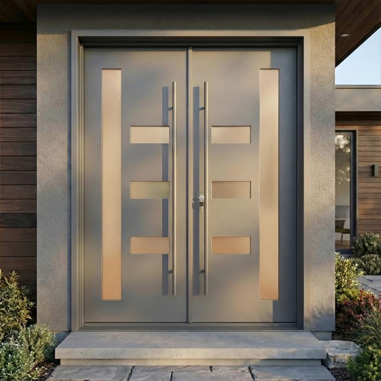 CUSTOM #916 WROUGHT IRON Style 73 X 86 SANDBLAST + CLEAR Glass VITO - D107 - BL - S - DOUBLE (Pull Handles and Locks are price separately)