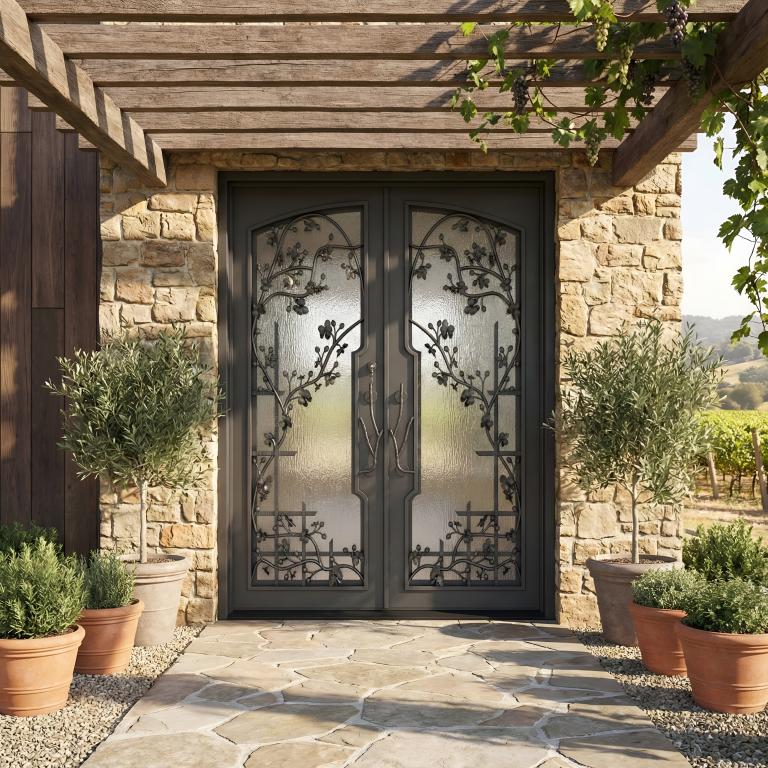 | ORCHID LH WROUGHT IRON Style 72 X 96 LEFT HAND INSWING FLAT BLACK Color RAIN Glass STEEL Material PULL HANDLE #069 VITO - D107 - BL - S - DOUBLE SQUARE TOP Art Deco, Mediterranean, Spanish, Italianate Style wScreen (Pull Handles and Locks are price separately) NOT CAPABLE FOR ELECTRONIC LOCKS | |