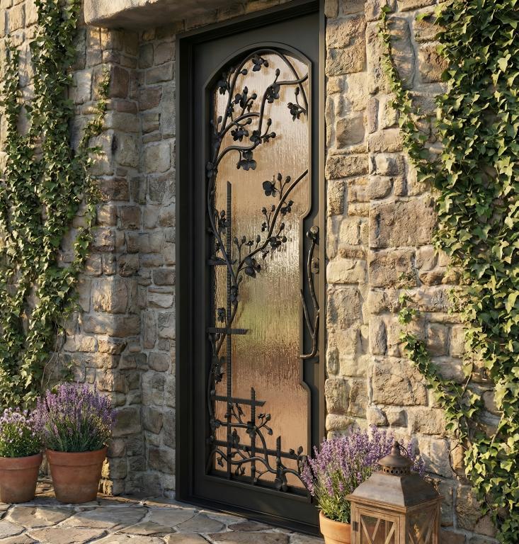 | ORCHID LH WROUGHT IRON Style 37 X 96 LEFT HAND INSWING FLAT BLACK Color RAIN Glass STEEL Material PULL HANDLE #069 VITO - D107 - BL - S - SINGLE SQUARE TOP Art Deco, Mediterranean, Spanish, Italianate Style wScreen (Pull Handles and Locks are price separately) NOT CAPABLE FOR ELECTRONIC LOCKS | |