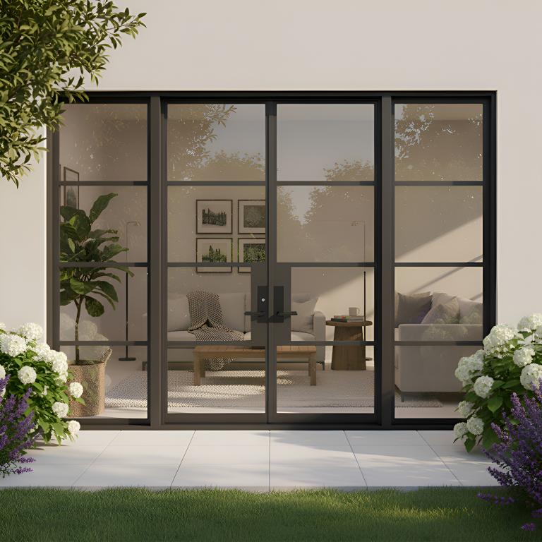 8 PANE FRENCH DOOR WITH SIDELIGHT RH #R FRENCH, INTERIOR Style 130 X 103 RIGHT HAND INSWING FLAT BLACK Color CLEAR Glass STEEL Material TANGO - 305A10 - BL - ET - ACTIVE SINGLE SQUARE TOP Modern, Contemporary Style wSidLights, special, clearance (Pull Handles and Locks are price separately) |