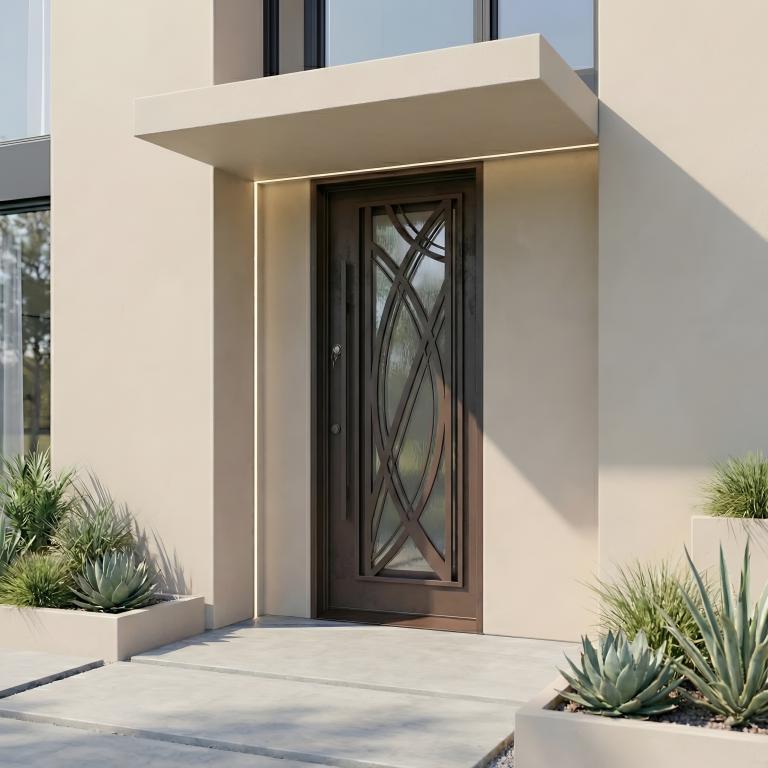 | CUSTOM #1042 PK134 WROUGHT IRON Style 31 X 80 RIGHT HAND INSWING MEDIUM BRUSHED COPPER (05) Color RAIN + CLEAR Glass VITO - D107 - ORB -S - SQUARE TOP wScreen (Pull Handles and Locks are price separately) | |