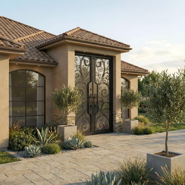 | CHARLOTTE RH WROUGHT IRON Style 61 X 96 RIGHT HAND INSWING FLAT BLACK Color RAIN Glass STEEL Material PULL HANDLE #019 VITO - D107 - BL - S - DOUBLE SQUARE TOP Mediterranean, Spanish, Italianate Style wScreen (Pull Handles and Locks are price separately) | |