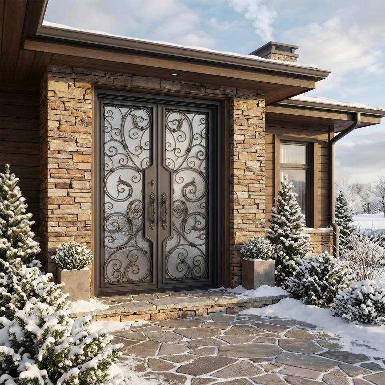 | CHARLOTTE Thermal Break RH WROUGHT IRON Style 61 X 96 RIGHT HAND INSWING FLAT BLACK Color RAIN Glass STEEL Material PULL HANDLE #019 VITO - D107 - BL - S - DOUBLE SQUARE TOP Mediterranean, Spanish, Italianate Style wScreen, Thermal Break (Pull Handles and Locks are price separately) | |