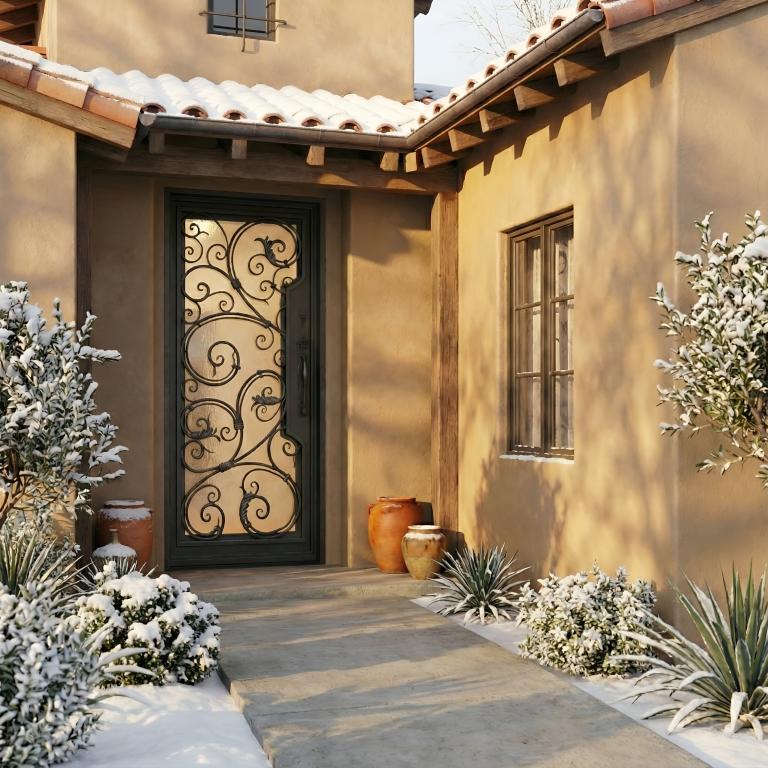| CHARLOTTE Thermal Break LH WROUGHT IRON Style 37 X 81 LEFT HAND INSWING FLAT BLACK Color RAIN Glass STEEL Material PULL HANDLE #019 VITO - D107 - BL - S - SINGLE SQUARE TOP Mediterranean, Spanish, Italianate Style wScreen, Thermal Break (Pull Handles and Locks are price separately) | |