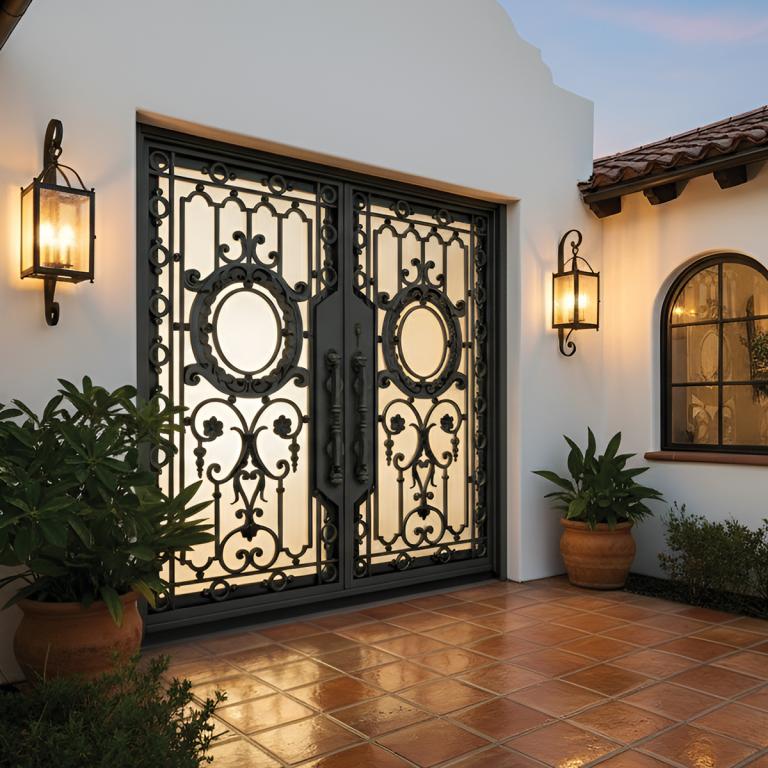 | STEPHY #R WROUGHT IRON Style 78 X 83 RIGHT HAND INSWING FLAT BLACK Color SILVER REFLECTIVE Glass STEEL Material PULL HANDLE #046 SIROCCO - D109 - ORB - SINGLE CYLINDER DOUBLE SQUARE TOP Mediterranean, Spanish, Italianate Style wScreen, special, clearance (Pull Handles and Locks are price separately) | |